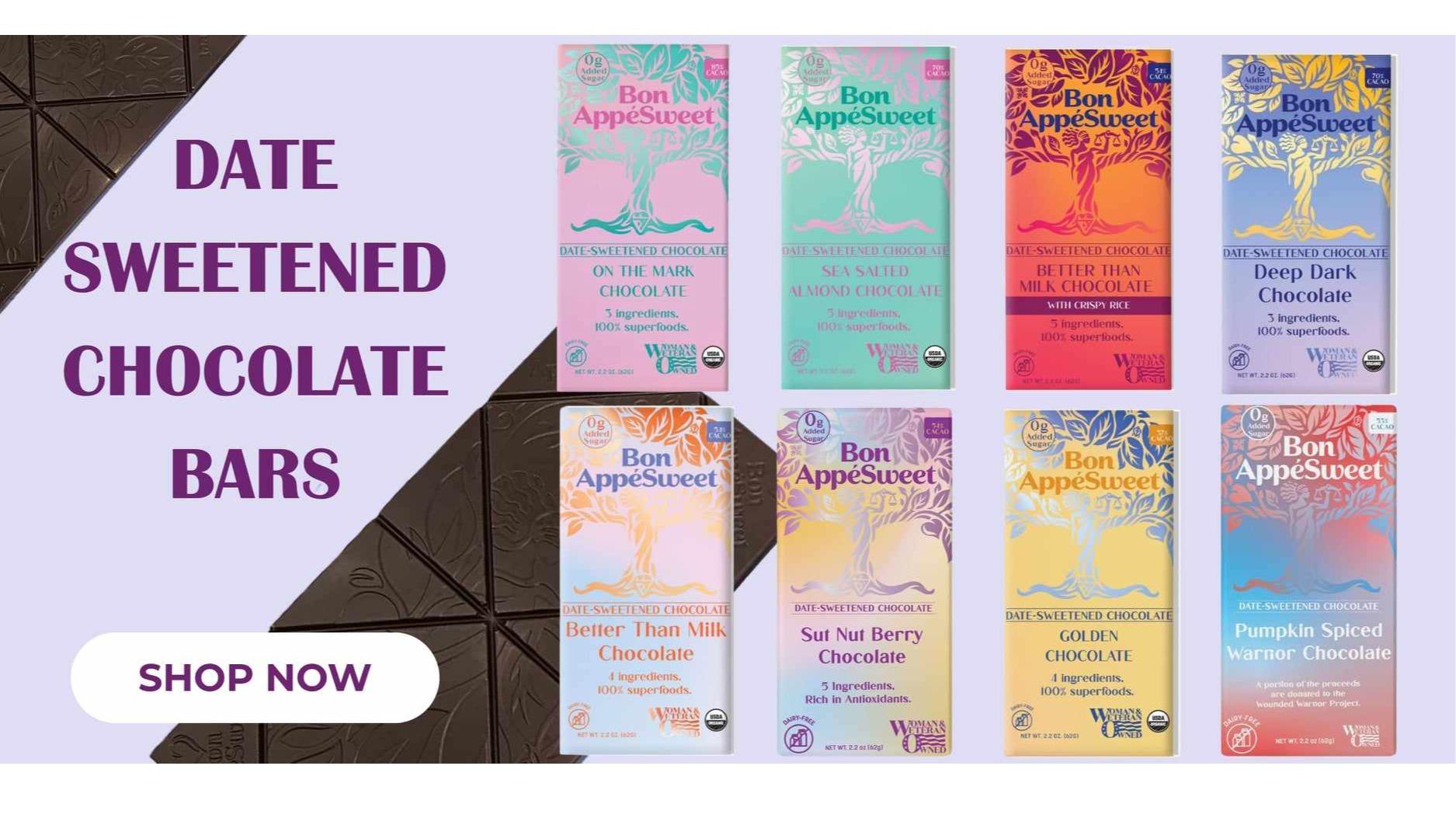 We've created delicious date-sweetened chocolate that has zero added sugar, zero sugar alcohols, and zero stevia. All of our chocolate contains only 3-5 organic, Kosher, ethically-sourced, dairy-free, gluten-free ingredients. We were featuredon Shark Tank in January and the Sharks LOVED our chocolate. We offer everything from chocolate bars to chocolate syrup!