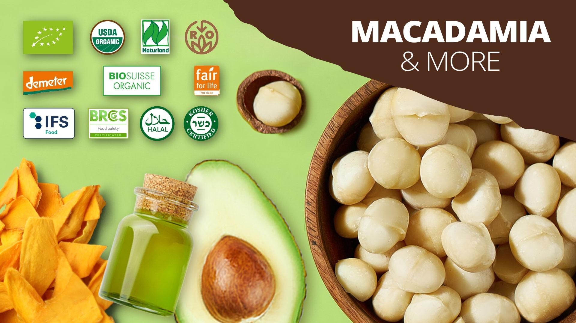 On the way from the farm to the packaged product, all products are subjected to multiple quality controls. LIMBUA is, among other certifications, IFS-certified, so you can be sure that all LIMBUA macadamia nuts comply with the highest food quality and safety requirements.